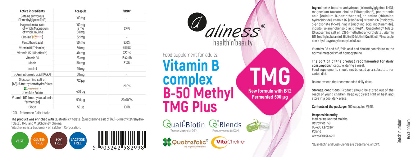 Witamina B Complex, B-50 Methyl, TMG Plus – 100 Kapsułek