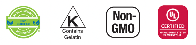 Not manufactured with yeast, wheat, gluten, soy, corn, milk, egg, fish or shellfish ingredients. Produced in a GMP facility that processes other ingredients containing these allergens.